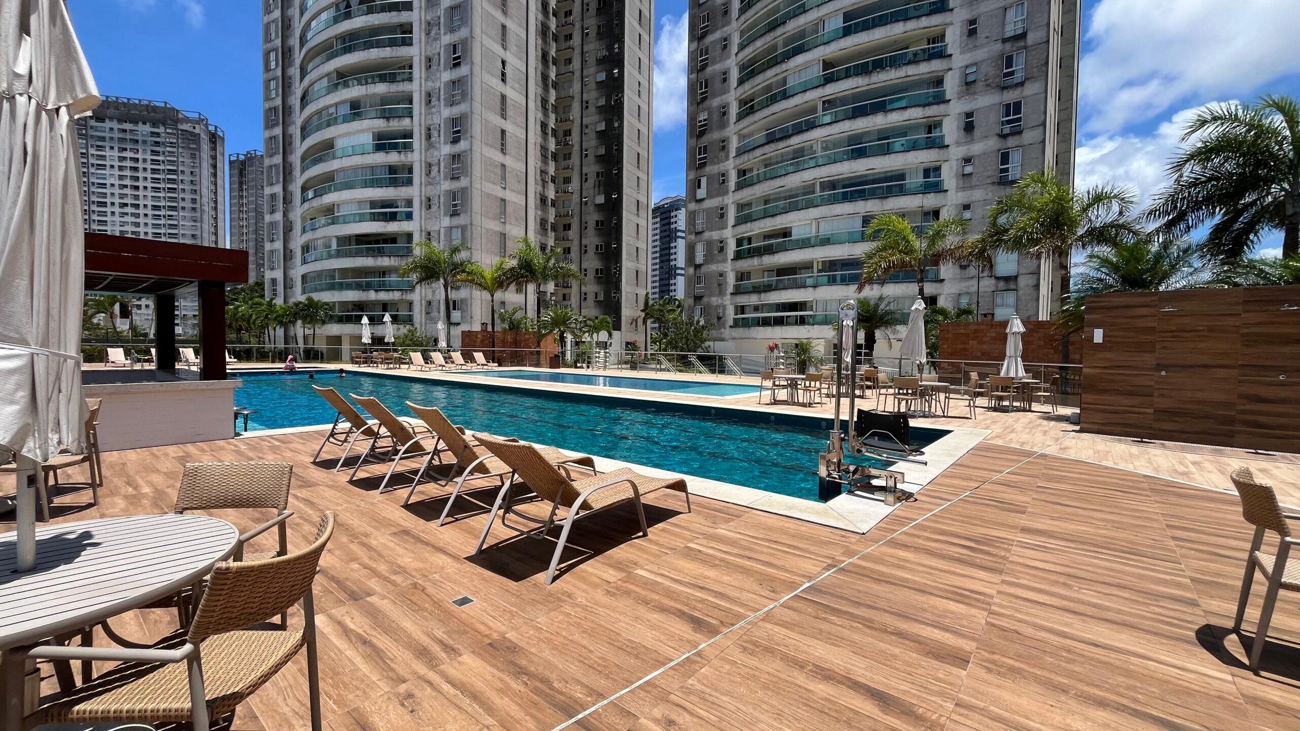 Descrição: Excelente apartamento com 122,58 m², mobiliado com móveis planejados, varanda gourmet e 2 vagas de garagem. Condomínio com infraestrutura de lazer completa e localização privilegiada, a cinco minutos do centro comercial de Salvador.