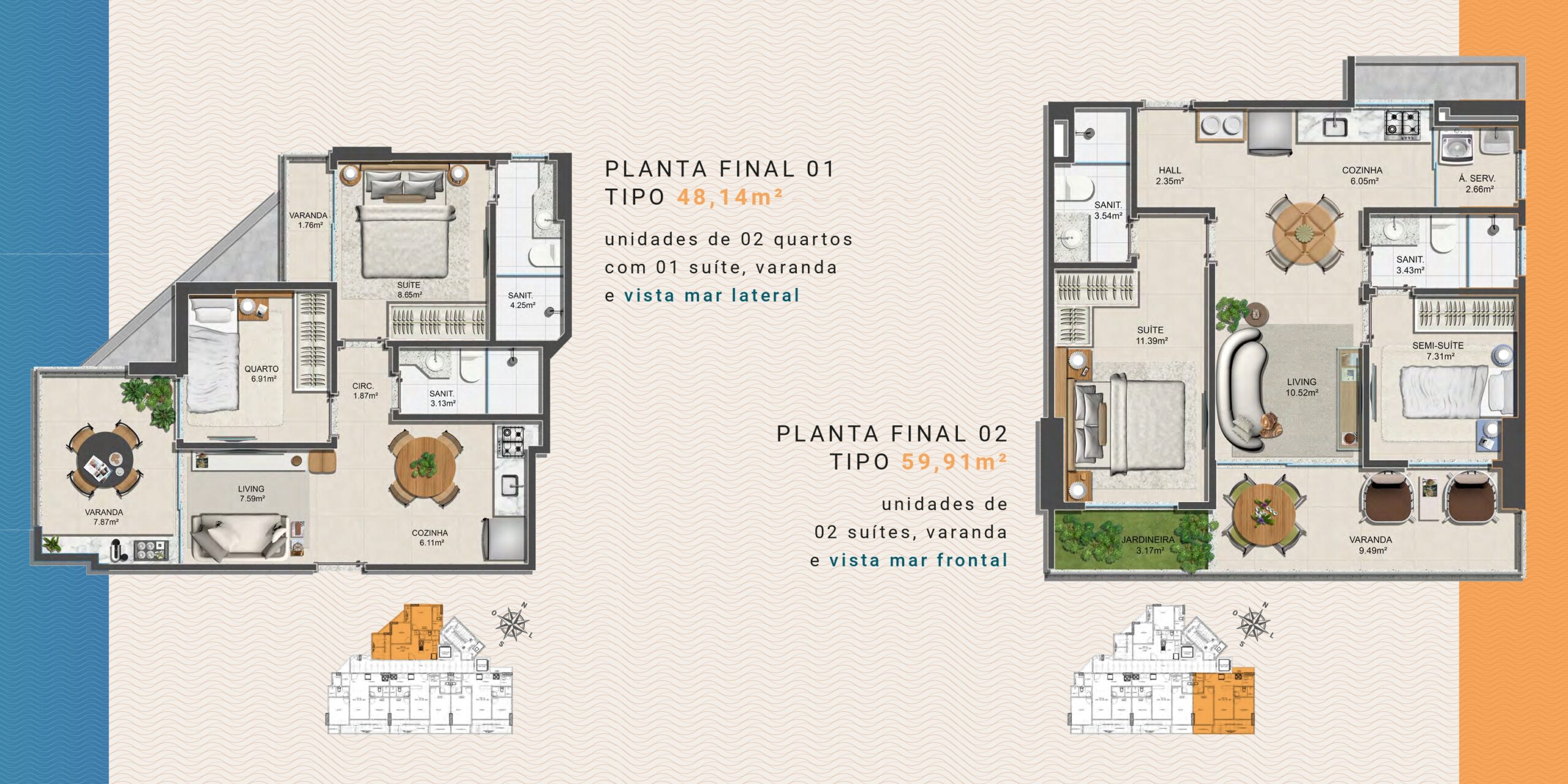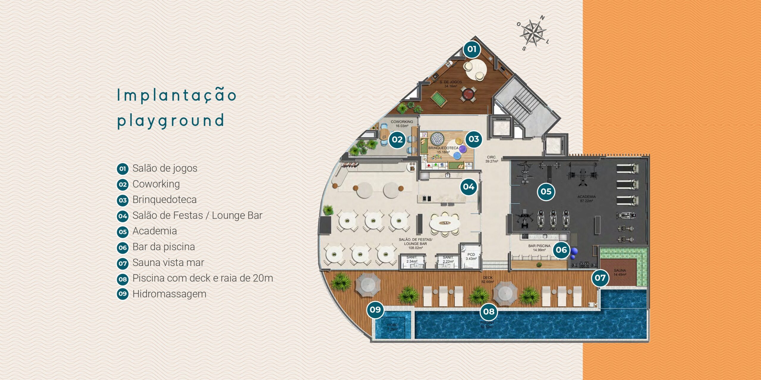 -Características: Salao de Jogos, Coworking, brinquedoteca, salão de festas, academia, bar piscina, sauna vista mar, piscina com deck e raia de 20m, hidromassagem, pet place, mini market, vagas privativas