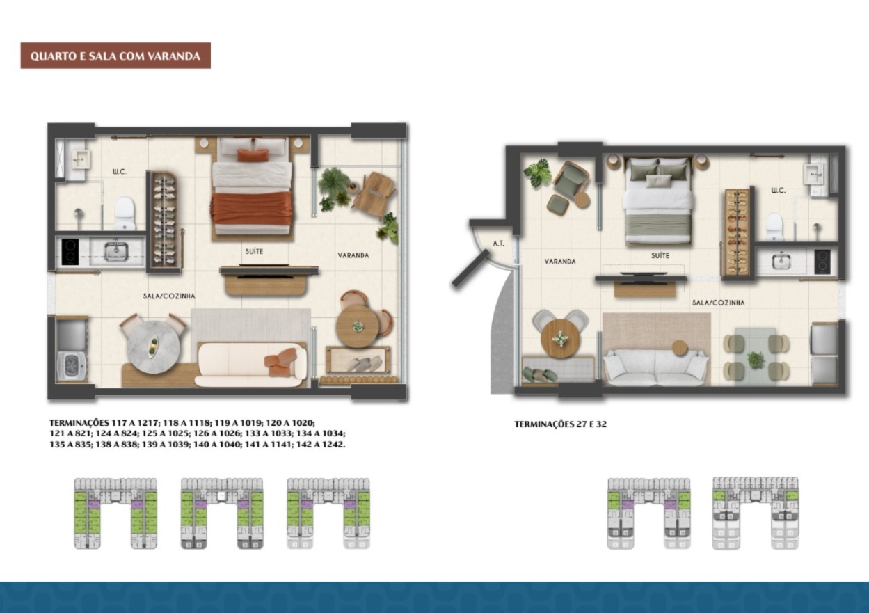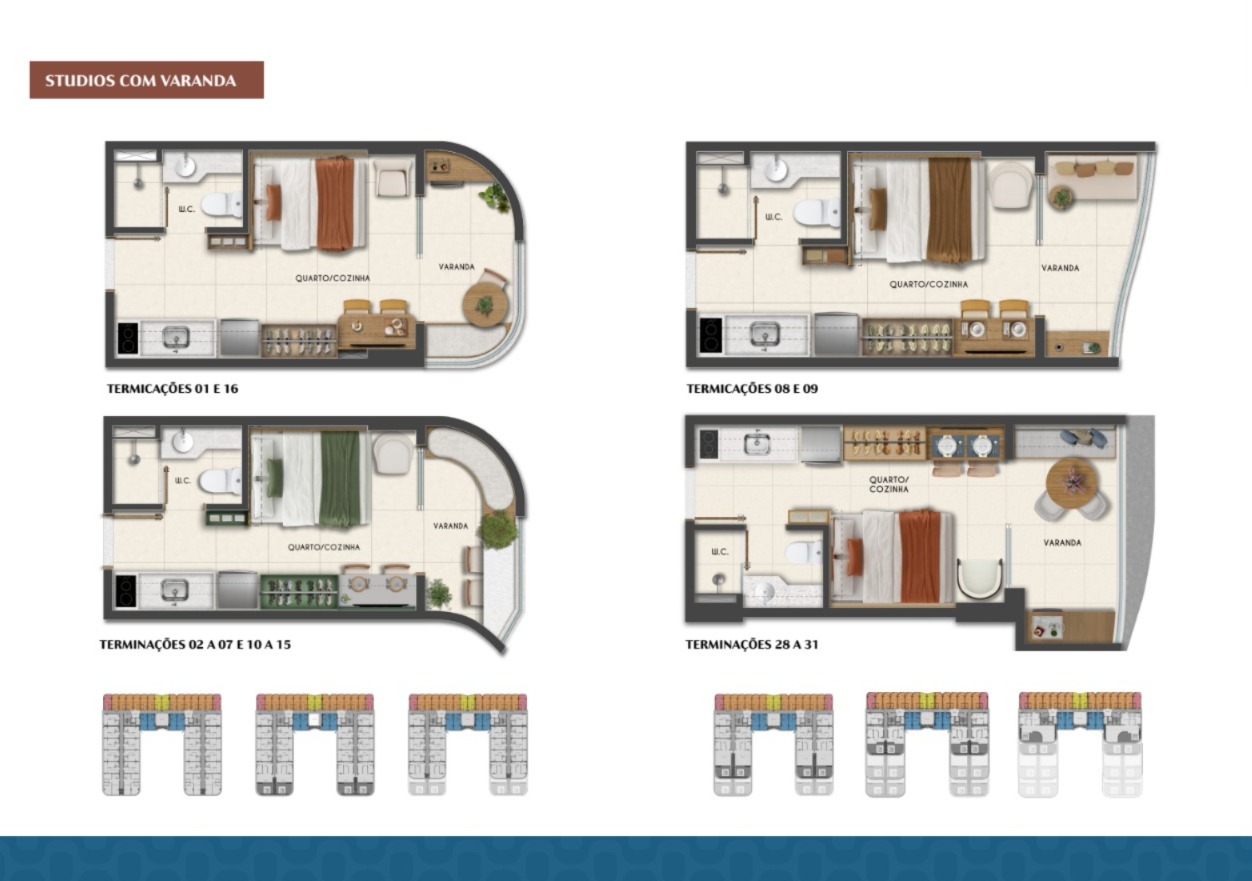 -Área: 19m2, ou 32m2, ou 50m2 ou 60m2